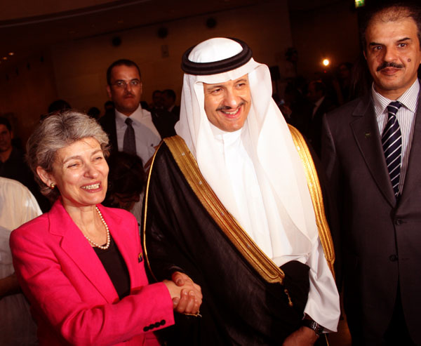 UNESCO Director General Irina Bokova and Deputy Minister for Foreign Information Kingdom of Saudi Arabia Dr. Abdulaziz S. Bin Salamah