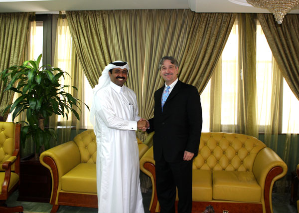 DOHA, QATAR - At the invitation of the Ministry of Energy and Industry, H. E. Dr. Mohammed Saleh Al-Sada, Qatar Minister of State for Energy & Industry Affairs and Don Hartsell, World Air League Commissioner met to discuss the matters relating to the production of Helium for the World Sky Race. A series of meetings in Doha were held with the Qatar Olympic Committee, business and civic stakeholders in the potential selection of Doha to be the Milestone City for the GCC during the World Sky Race.