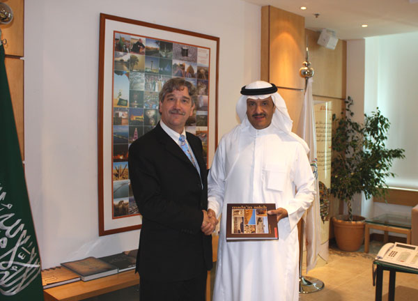 RIYADH, SAUDI ARABIA - His Royal Highness Prince Sultan bin Salman bin Abdul-Aziz, Secretary-General of the Supreme Commission for Tourism and Director General of the Saudi Air Club and Don Hartsell, World Air League Commissioner consulted on program planning for the World Sky Race that will require air space approvals for the route to proceed through the Kingdom of Saudi Arabia. As the local organization chosen most appropriate, the Saudi Aviation Club will be engaged to resolve issues and obtain clearances on behalf the competing Sky Teams. At the invitation of His Royal Highness, Commissioner Hartsell toured the historical town of Al-Diriyyah to be viewed as a fly-over beacon during the World Sky Race.