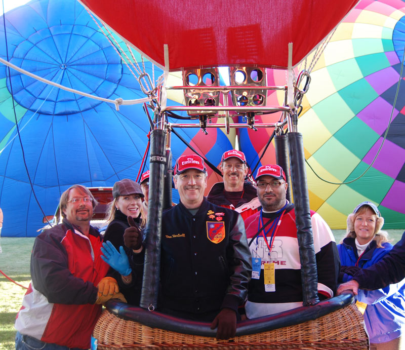 Albuquerque, New Mexico- Star Events, the managing agent for the World Sky Race UAE Local Organizing Committee (UAELOC) and the managing agent for the Dubai Balloon Festival, entered three hot air balloons in the Albuquerque Balloon Festival. While touring aloft over the spectacular and scenic vistas of Albuquerque, WAL and Star Events further developed their mutual plans to merge the World Sky Race and the Dubai Balloon Festival. Representing Star Events, Mr. Bolad Ahmed Hassam and Mr. Frank Wechter participated in the balloon ascensions and festival ceremonies.